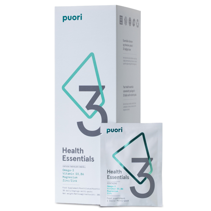 Puori P3 Health Essentials conține micronutrienții esențiali de care majoritatea oamenilor au nevoie ca supliment pentru a rămâne sănătoși: Omega 3, Magneziu și Vitamina D. Un plic contine: 3 capsule Omega 3, 3 capsule Magneziu si 1 capsula Vitamina D3. Ambalate convenabil în doze zilnice ușor de luat cu tine în deplasare.